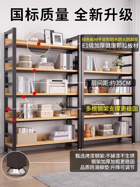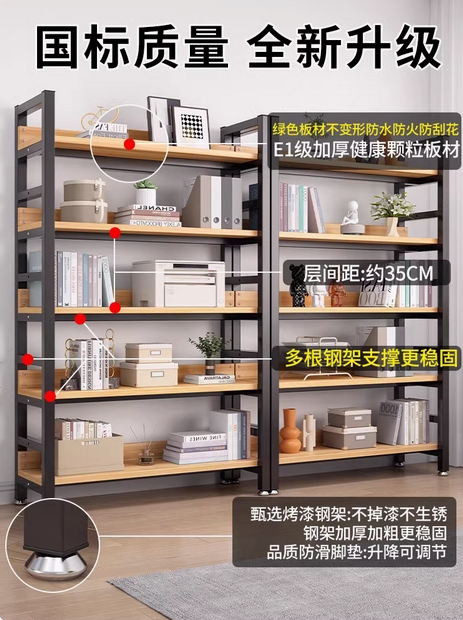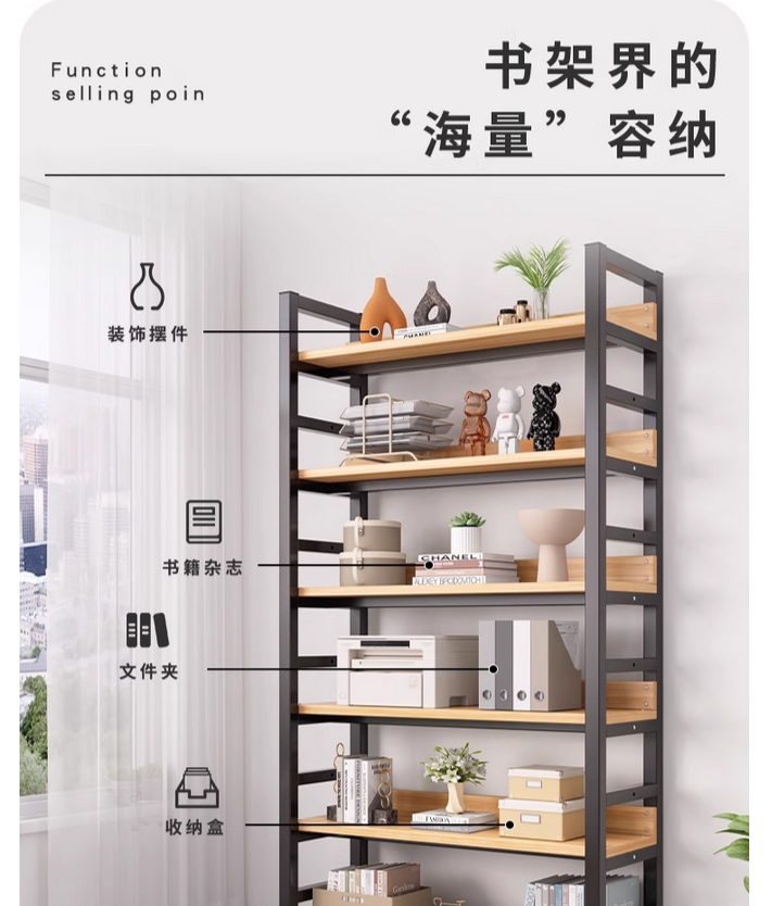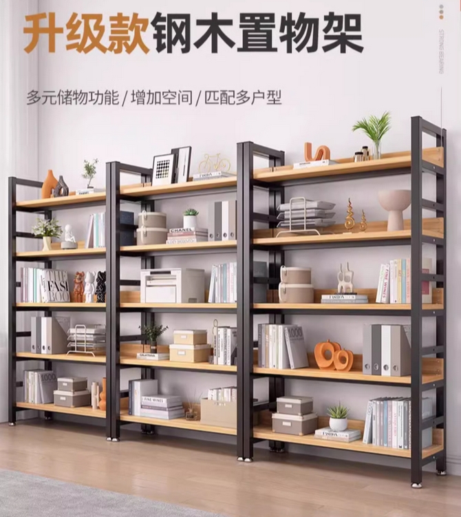 书架简约落地钢木多层客厅简易储物架家用卧室收纳铁艺书柜置物架