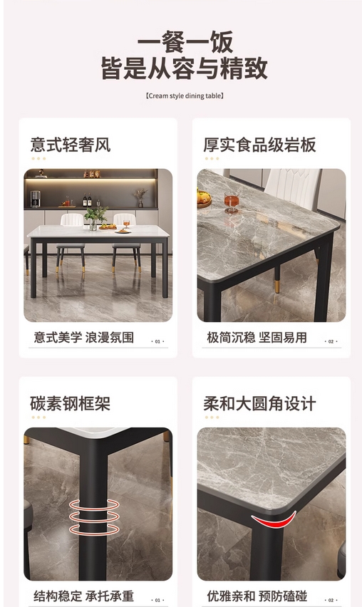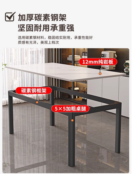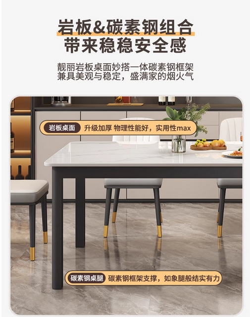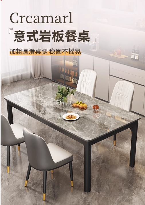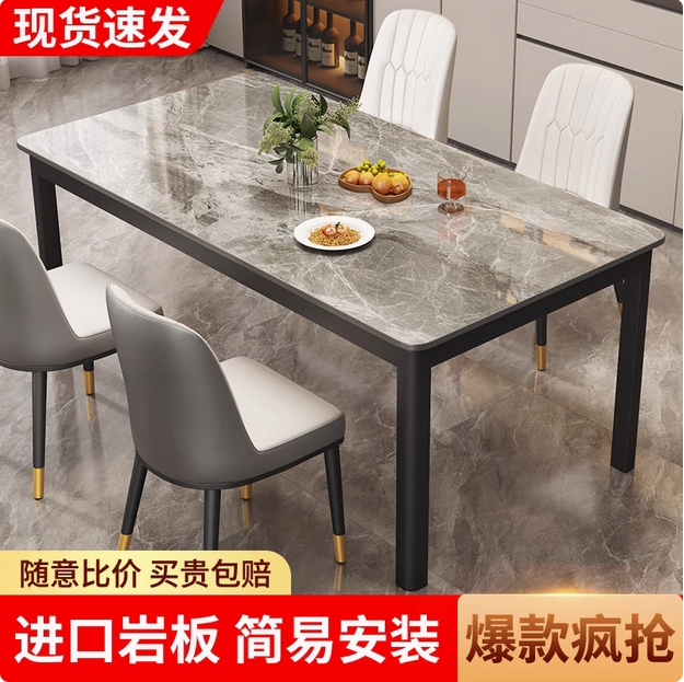 岩板餐桌小户型现代简约家用长方形餐厅饭桌轻奢大理石餐桌椅组合