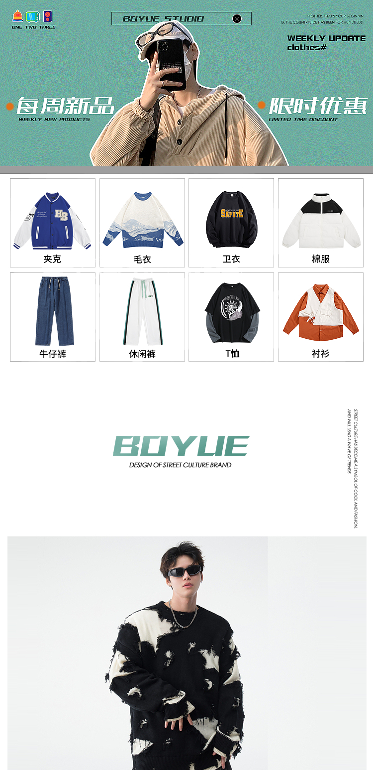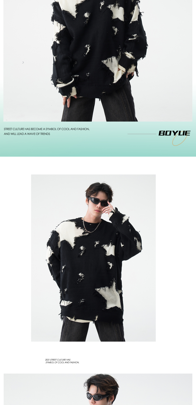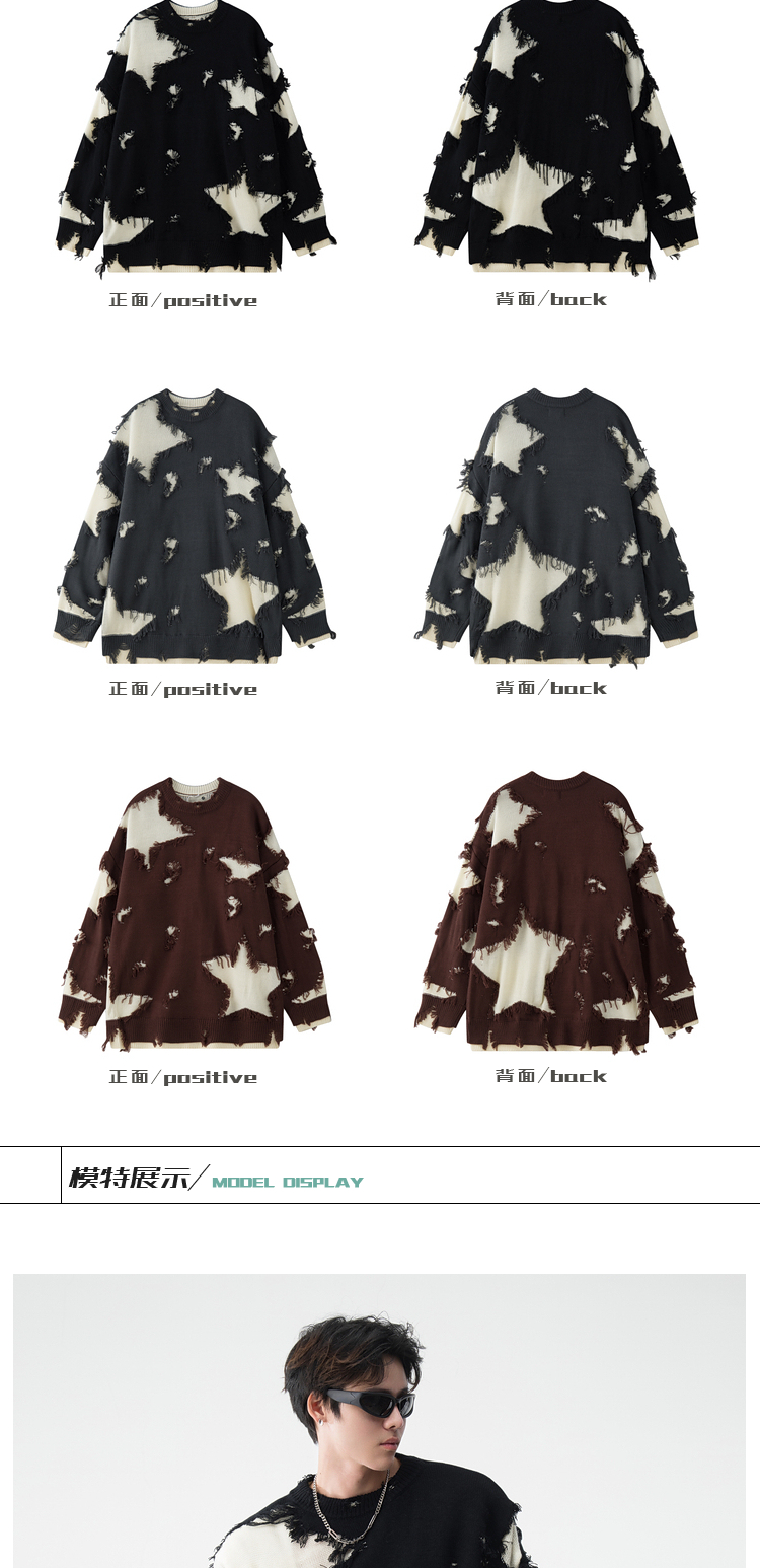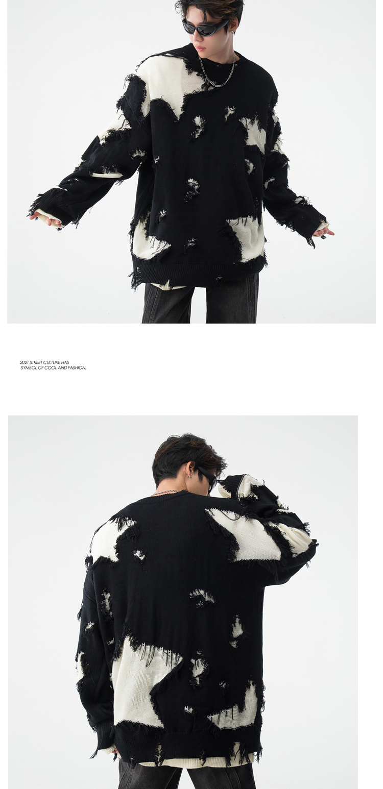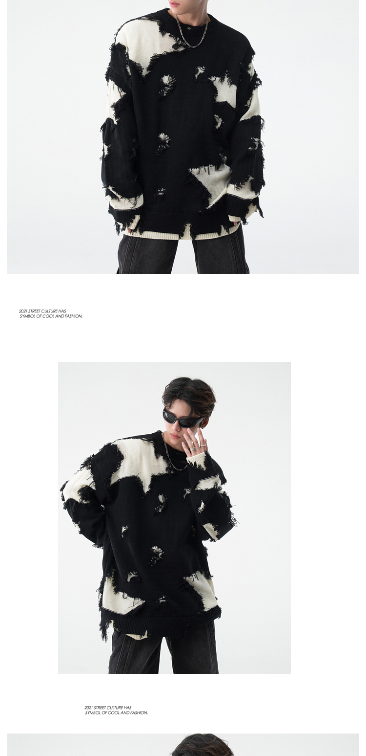 vintage美式复古创意提花圆领毛衣男女秋冬hiphop情侣长袖针织衫