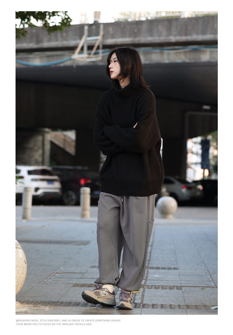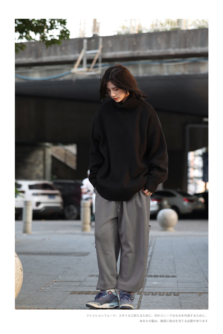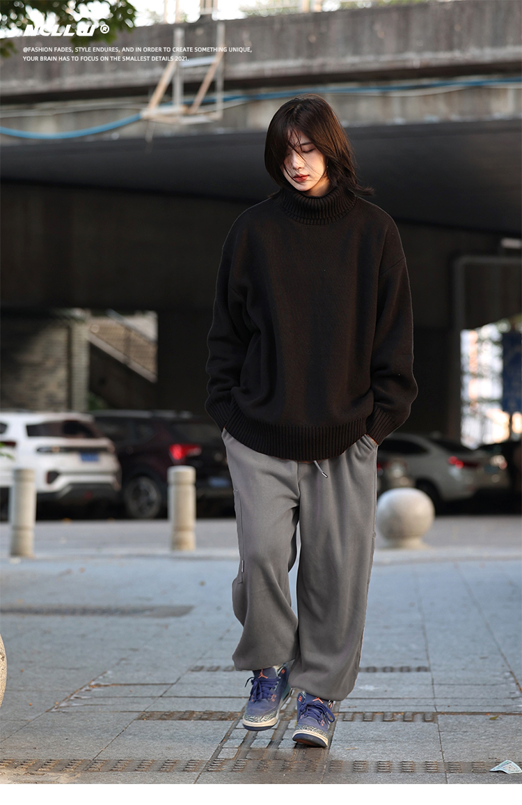 vintage美式复古创意提花圆领毛衣男女秋冬hiphop情侣长袖针织衫